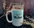 Mug: Teal gradient oversized 15oz coffee mug with scripture printed on back.