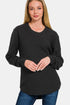 Zenana Ful Size Round Neck Long Sleeve Curved Hem Sweater