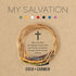 Wear and share God's love and salvation. Faceted glass beads and plated metal are uniquely crafted in the Salvation Gold Bracelet.