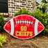 Celebrate your Chiefs with this red gingham football design! This is a garden stake printed on corrugated plastic board; it is waterproof and should last for years to come! A set of 12” metal stakes is included. This garden stake is 30” x 19”.