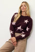 Long Sleeve Lurex Star Pattern Sweater : Burgundy