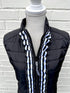 Maggie May Ruffle Puffer Vest - Black w Black & White Ribbon: Black w Black White Stripe Ruffle Ribbon / Small