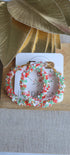 The Christmas glitter earrings are shown in our largest size. They are on gold hoops. These earrings are very lightweight.