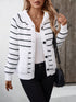 Striped Button Up Long Sleeve Hooded Cardigan