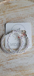 Our white iridescent Glitter Hoop Earrings are on silver nickle free hoops. They are lightweight.