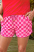 Fashion-W Checkered Drawstring Waist Casual Shorts: Pink / Missy / S